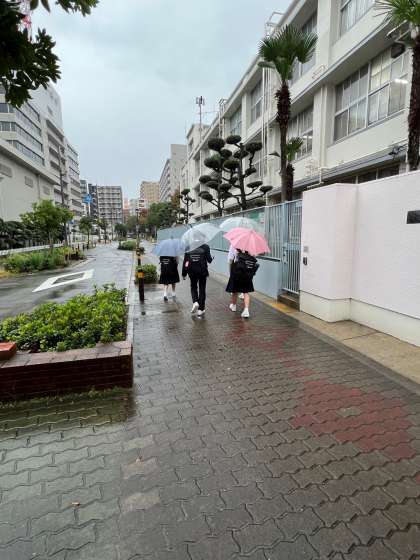 1日目よりも慣れてきたでしょうか? 雨の中ですが、足元に気をつけて行ってらっしゃい。