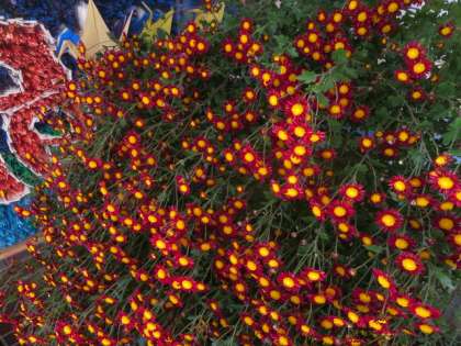 学校の花を育ててくれているのは本校の管理作業員さんで、彼に聞いてみたところ玄関に咲いている花は全て菊だそうです。