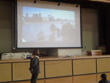 地震、津波、落雷、暴風、暴雨など、あらゆる状況で様々な災害が起こった場合を想定し、生徒が対策や避難の仕方を調べ、発表する活動です。