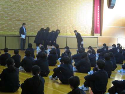 さて話は変わりまして、今回の集会では表彰がありました。冬休みの間に行われた吹奏楽部のコンテストにて3つの賞を獲得しました。以下がその内容です。
