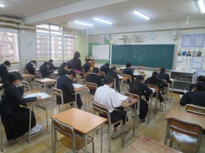 本日、3年生は実力テスト、そして1・2年生はチャレンジテストを行います。皆さんとても真剣に取り組んでいました。