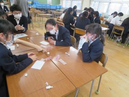 家庭科部ではプラ板を使ってオリジナルのキーホルダーを作成していました。初めは大きくペラペラなプラスチックが、小さくカチカチになるのはとても不思議ですよね。