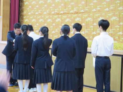 今朝の全校集会では各種委員会と学級委員長の認証式が行われました。これから半年間、学校をより良くするために様々な活動をしてくれます。