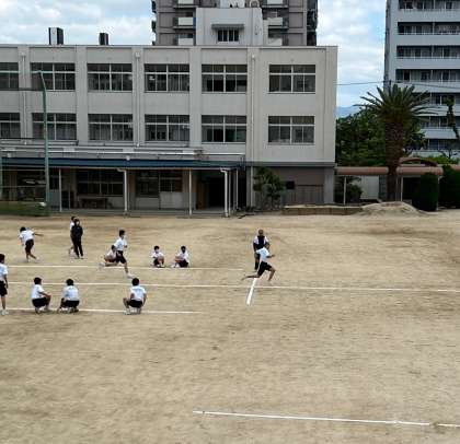 ですが、そのような中でも、生徒たちは運動場で短距離(25m)のタイムを少しでも縮めようと、精一杯頑張っています。