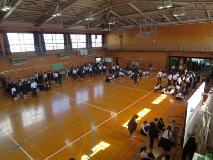 皆さん、随時行われる放送の指示に従って冷静に行動でき、とてもスムーズに避難ができていたと思います。今回の訓練から良かった点ともっとより良くできる点を考え、もし本当に災害が発生したときに自分の命を守る行動を取れるようにしてください。