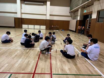 精一杯体と頭を使った後は、順番に入浴を済ませ、パンとジュースの補食で小腹を慰めます。