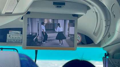 車中でのおやつタイムで小腹を満たしつつ、車中テレビに流れる「豊中TikTok」で心を満たします。