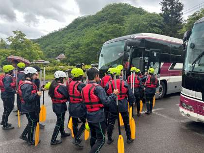 服を着替えて、ライフジャケット・ヘルメットを装着し、行先を託すパドルを装備して、いざ仲間たちとともに決戦の地へ!