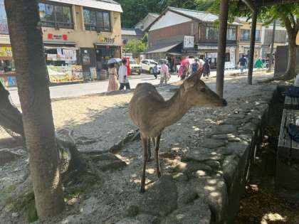 奈良公園の鹿は神の使いとされていますが、宮島の鹿は……保護はされているそうですが、そういうわけではないようです。