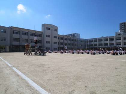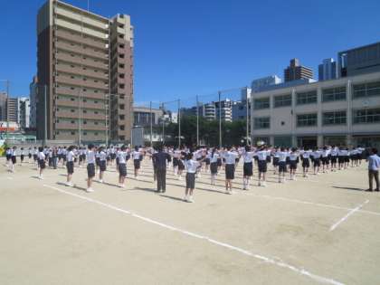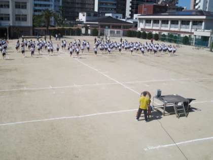 修学旅行、一泊移住が終わりました。次は体育大会です。2週間後に迫った体育大会に向けて今日の6限目に全体練習を行いました。