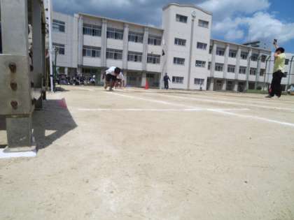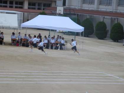 プログラム3番は100m走です。50mより距離が長いこの競技は、全速力を出すことより、高い速度を維持することが大切です。