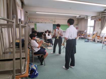 希望の楽器ごとに分かれて、演奏の体験です。