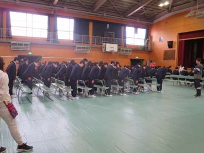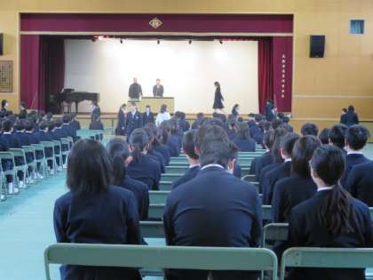 在校生の皆さんは様々な形で3年生の先輩たちにお世話になったと思います。素晴らしい式にするためには在校生の皆さんの協力が必要不可欠です。3年生たちが清々しく旅立てるようしっかりとした気持ちで式に臨みましょう。