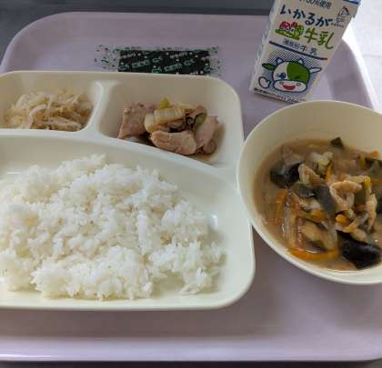 今日のメニューは、 ごはん 牛乳 焼き鳥 味噌汁 もやしのゆずの香あえ 焼きのり でした。