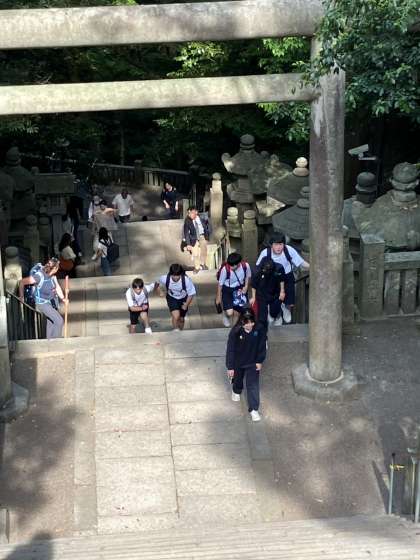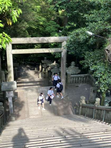 生徒たちが散策をしています。