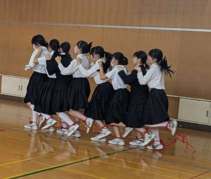 昼休みの時間も有効活用してムカデ競争の練習をしています。