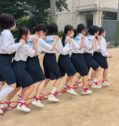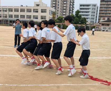 1組も、2組に負けずに昼休みを利用して、授業前にムカデ競争の練習をしています。