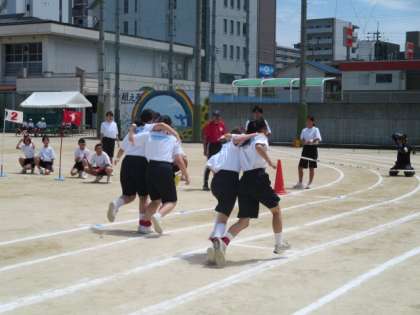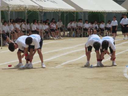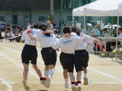 生徒たちの熱い声援を背に、走者たちは一糸乱れぬ呼吸でゴールをめざします。時にはゴール間近で接戦が繰り広げられました。