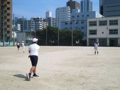 軟式野球部は、基礎練習、バッティングやキャッチボールなどの練習をしていました。