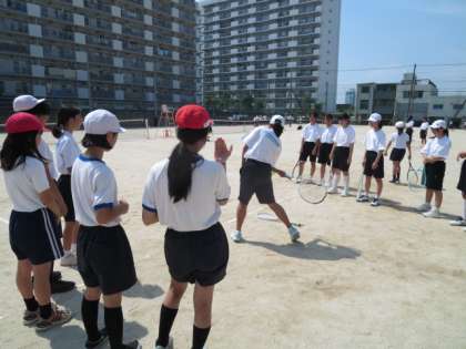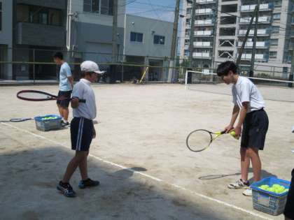 硬式テニス部は、実際にボールを打つ練習をしていました。