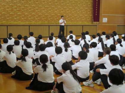 「大人になったときは、同じ職場の人とのチームワークが大切です。普段の忘れ物や遅刻などをしないことは、大人になるためには必要なことです。」といった内容のお話がありました。