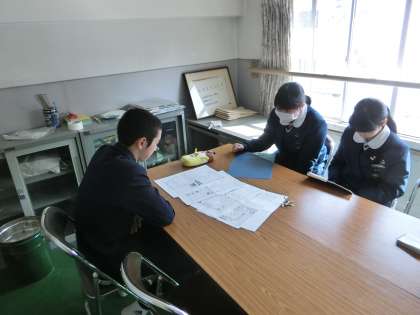 生徒会のメンバーは、行事や学校のようすを記事にして広めるために、昼休みに会議をおこない、新聞のレイアウトや内容を決めています。今回は○○先生に教科の魅力をインタビューしたみたいです。発行をお楽しみに。
