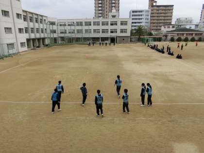 3年生の体育です。今回は担任の先生も参加してのリレー、アルティメットをおこない、大変盛り上がりました。