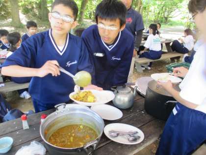 お水の量が難しくて、うすくなったカレーや、ちょっとべとっとしてしまったご飯もありましたが、それも野外炊事の醍醐味の一つ!