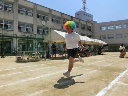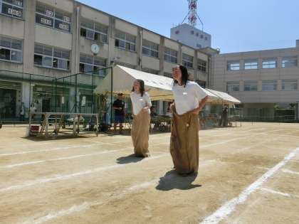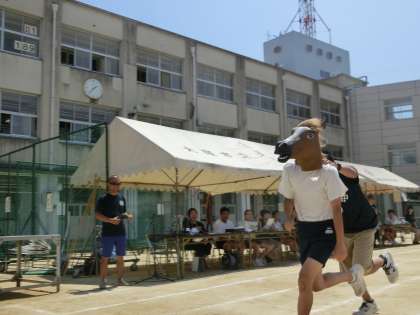 バラエティー競走のようすです。カードに書かれた人物を探し、出されたお題をこなしながらゴールを目指しています。大変盛り上がりました。