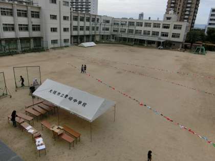 放課後、愛の恵幼稚園の方がグランドで運動会の準備をおこないました。