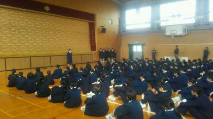 11月4日(金)5限目全校集会を行いました。野球部の表彰(1ブロック3位)・校長先生のお話・各種委員会からの報告・芝橋先生からの諸注意がありました。