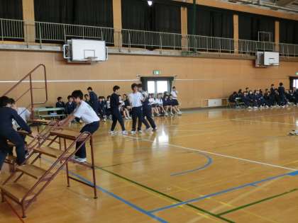 ちなみに、今回も教員は競技中に一切の手助けをしていません。赤い線から入らずに生徒たちだけで考えて動くのを見守っていました。