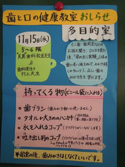 15日(水)5・6限に歯と口の健康教室を行います。