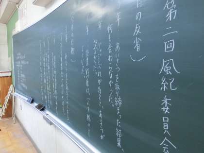 写真は、体育委員会・環境委員会、風紀委員会のようすです。