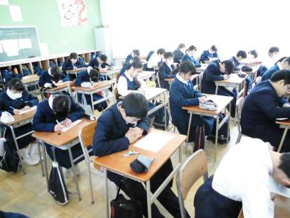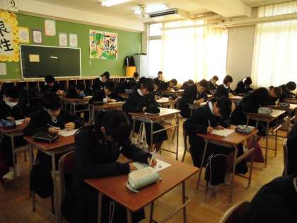 12日(金)5限。1年生は「今年の抱負」というタイトルで作文を書きました。