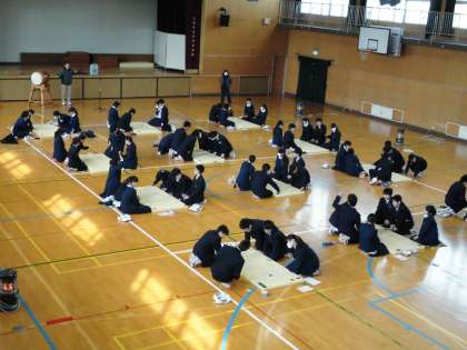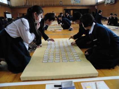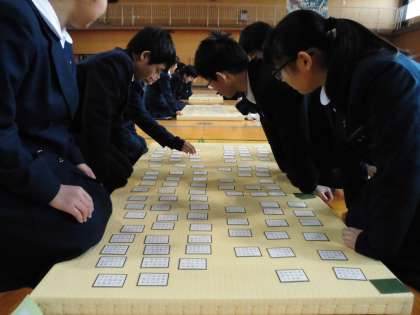 12月から練習を始めた百人一首。札を並べてすぐに自分がおぼえている札がどこにあるのか探したり、真剣になって上着を脱いだりと、外の気温はずいぶん低いですが、白熱していました。