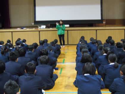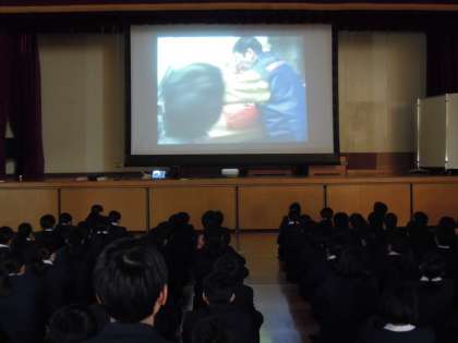 北区社会福祉協議会の軸丸さんからのお話とDVDを鑑賞し、みんなが住みやすい「福祉のまち」とはどんなまちなのかを考えました。