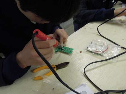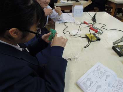2年の技術の授業では「ダイナモラジオ」を製作しています。