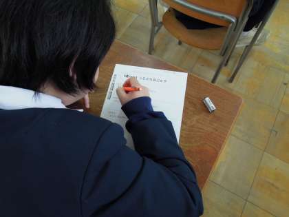 「バリアフリー」ってなんだろう、「障がい」ってなんだろうと考え、街ではどんな声かけが必要か考えました。