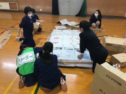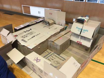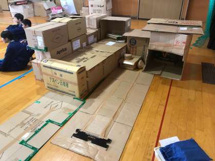 実際に自分たちで工夫して、ダンボールで避難所での空間作りを行いました。