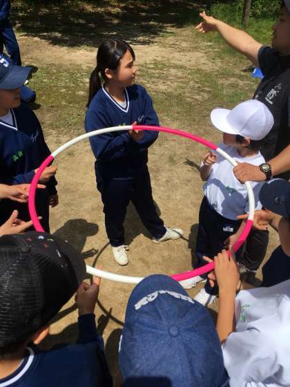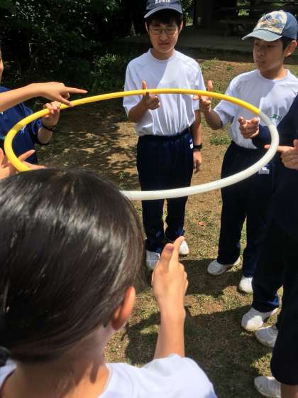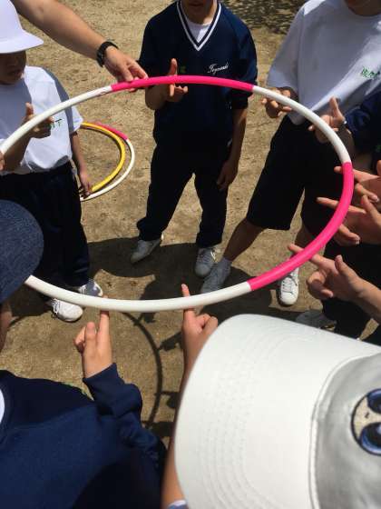 一番低い人の肩の高さに合わせて、同時に着地させます。