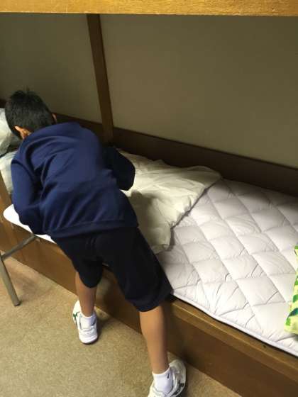 6時30分に起床して、ベットの片づけをしています。