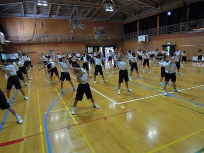 前半はラジオ体操。細かな動きの確認を中心に行いました。