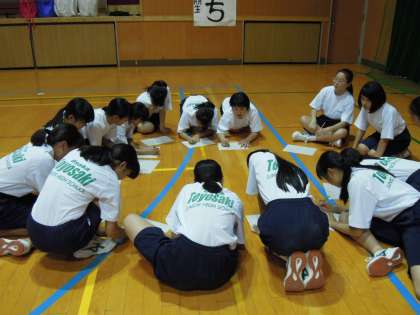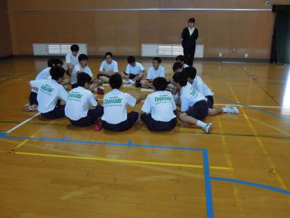 後半は学年種目のチーム分け。各クラス円になって真剣に話し合っていました。