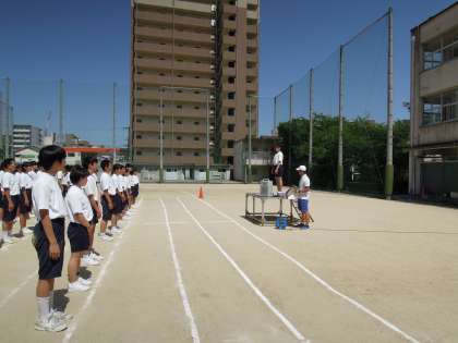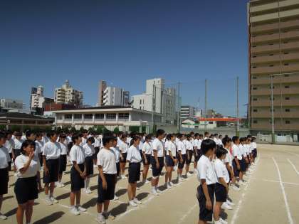 体育委員長から今日の練習の意義の話のあと、入場行進・開・閉会式の練習を行いました。
