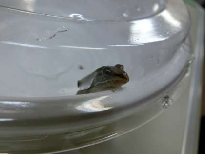理科室のおたまじゃくしがついにカエルになりました。まだ10匹ぐらいおたまじゃくしがいるので、来週も何匹かはカエルになると思います。なんてかわいいのでしょう。