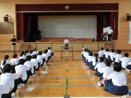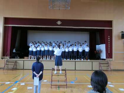 授業の最後には、学年合唱の指揮者が全体に指示を出し、合唱練習をしました。