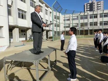 全校集会では、ワールドトークの表彰と女子テニス部の表彰がおこなわれました。秋に大会のあるクラブもあるので、目標に向かって頑張っていきましょう!!