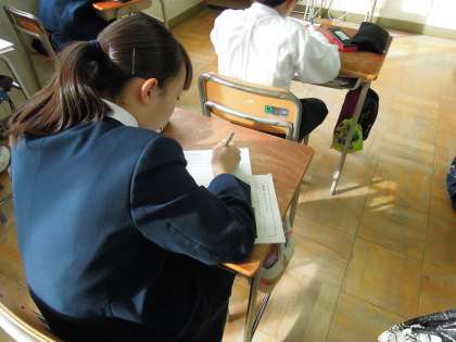 今日の5限、2年生は道徳授業として「亡き母へのトランペット」を読み考えました。