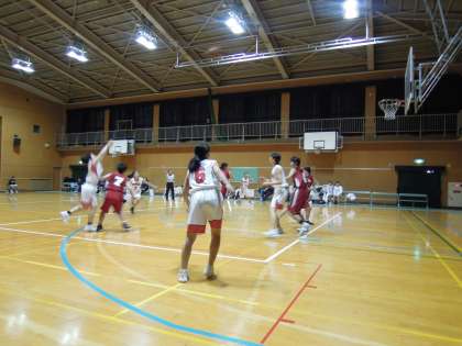 今日は体育館で女子バスケットボールの公式戦が行われています。
